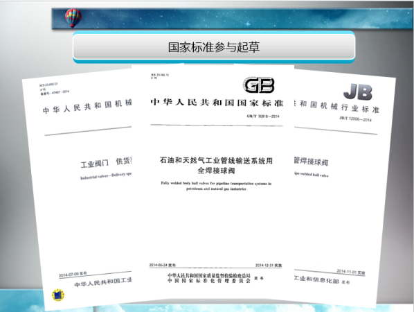 在多年來的產(chǎn)品開發(fā)和技術(shù)攻關(guān)中,該公司發(fā)明專利《一種補償密封球閥》經(jīng)國家知識產(chǎn)權(quán)局審核,榮獲國家發(fā)明專利;積極參與國家標(biāo)準(zhǔn)、行業(yè)標(biāo)準(zhǔn)的起草制訂,《石油和天然氣工業(yè)管線輸送系統(tǒng)用全焊接球閥》(GB/T 30818-2014)、《鋼管焊接球閥》(JB/T 12006-2014)、《工業(yè)閥門 供貨要求》(JB/T 7928-2014)等5項國家和行業(yè)標(biāo)準(zhǔn)經(jīng)國家機械部批準(zhǔn)獲得實施;相繼完成5項省級工業(yè)新產(chǎn)品的研制開發(fā),并取得17項國家實用新型專利。